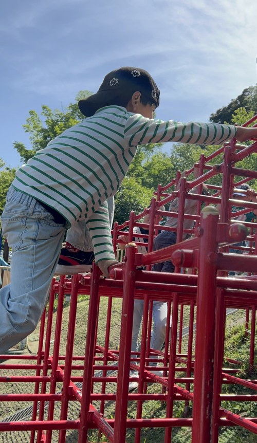 ↑ジャングルジムやいろいろな遊具で遊ぶ姿を見ると「大きくなったなぁ」と成長を感じます。