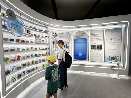 ここではREBORNをテーマに未来に実現を目指すヘルスケアや都市生活の体験、iPS細胞による再生医療の可能性等を発信しているパビリオンです。