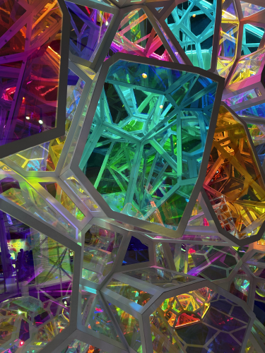 ↑見る角度によって様々な色に変化するキラキラと美しい空間。