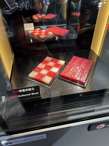 まだ実用化はされていませんが実際に作られたお肉が展示されていました。