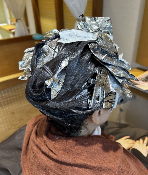 ↑ホイルの中がブリーチ剤で明るくなっています!