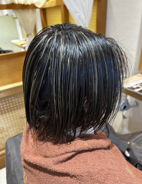 いつも入れるハイライトはブリーチを使用するのですがナチュラルな仕上がりになるようにしていました。
