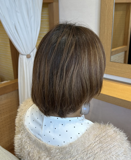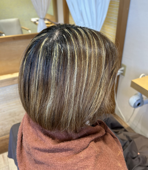 褪色してきたときに白髪をぼかせるようにハイライトを入れることにしました。