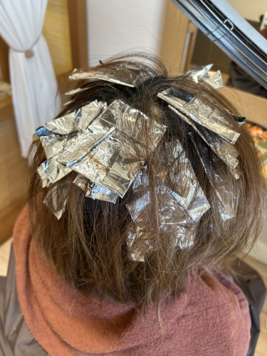 ↑ホイルの中がブリーチを使ったハイライトになっています。